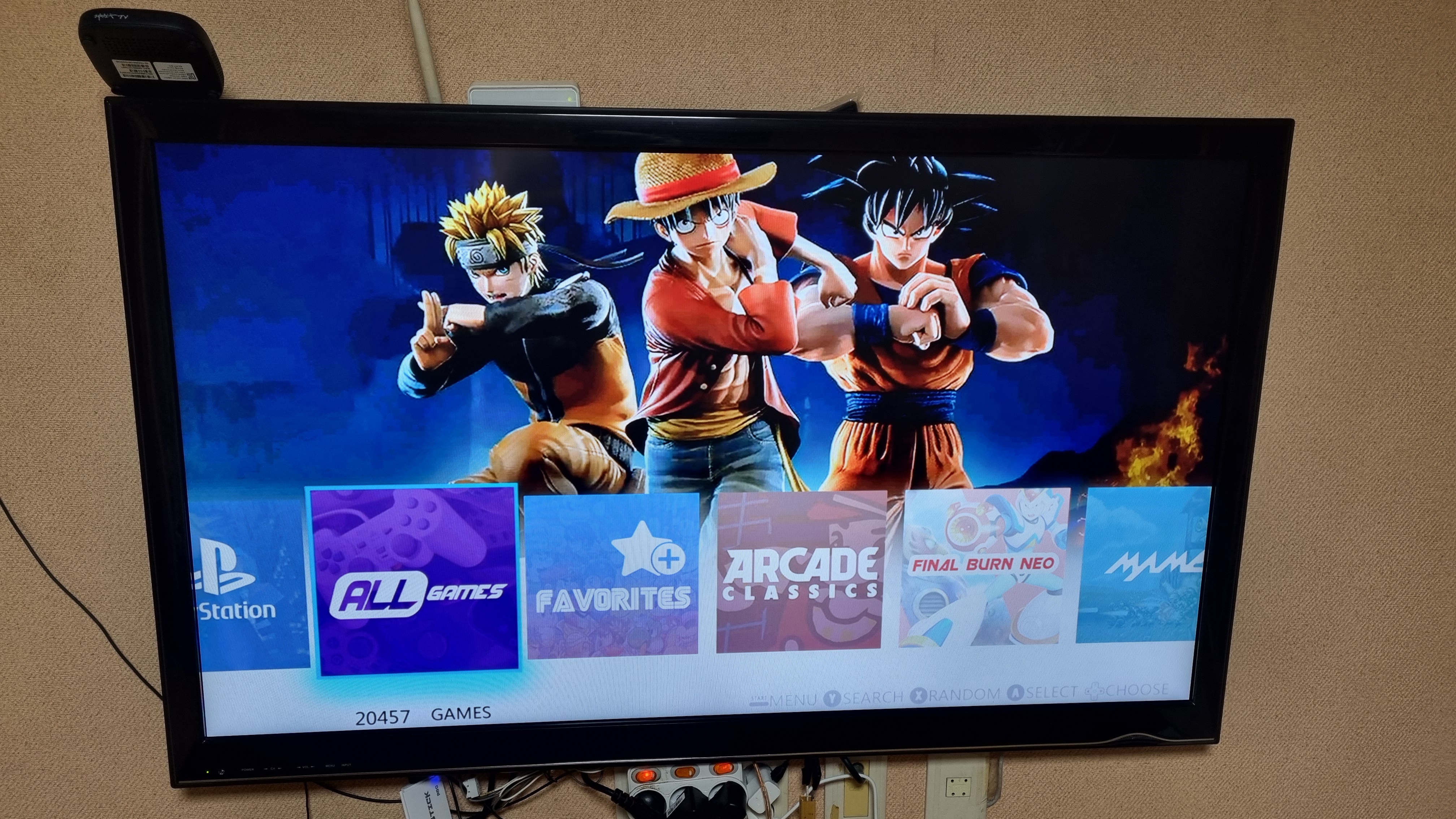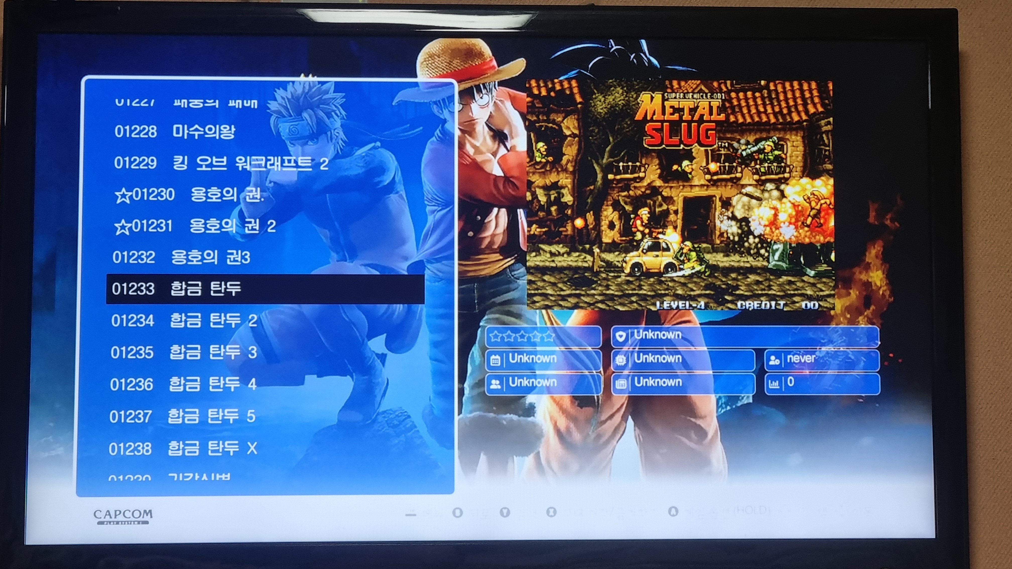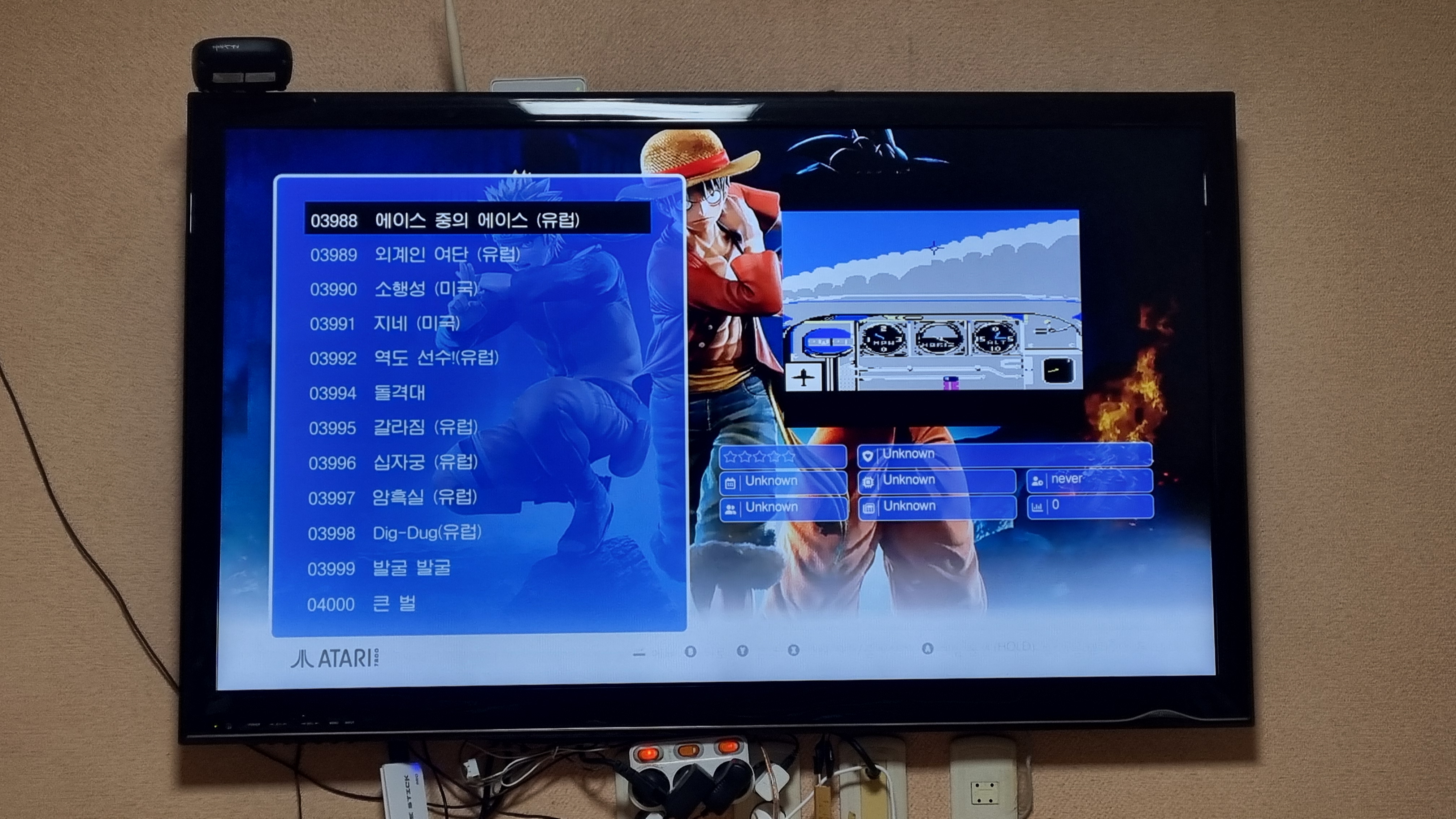 HDMI로 TV와 연결하여 처음 켜보면 이런화면입니다. 2만여개 게임이 있다곤 하지만 뻥입니다 ~_~ 중복이 많고 모르는 게임 천지입니다 ㅋ