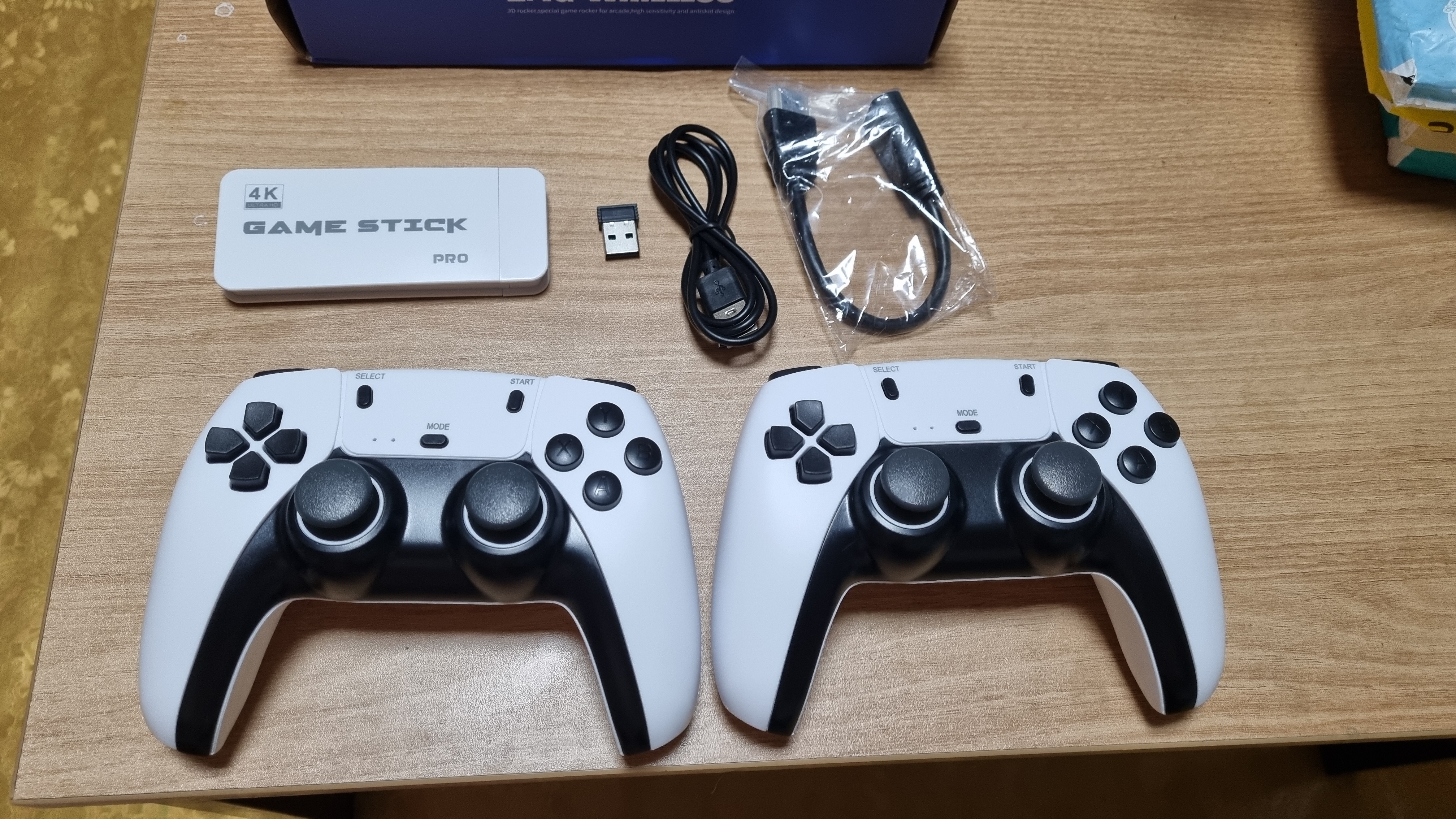 구성품으로는 게임스틱 , 패드 2개, 동굴, 전원선, hdmi 연장선 입니다.