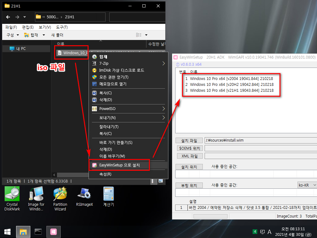 3. 입니다님의 EWS를 마우스 우클릭의 iso, wim, swm 파일로 연결을 해두었습니다. 편하네요.