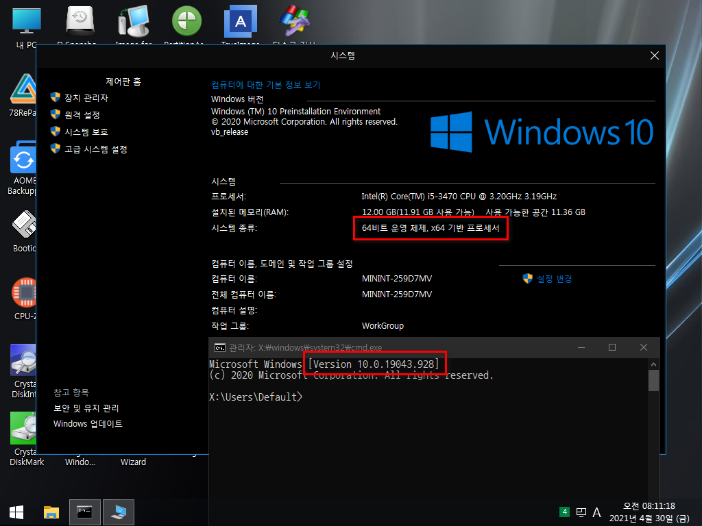오랜만에 업데이트입니다. 21H1 RTM 버전으로 만들어진 PE입니다.