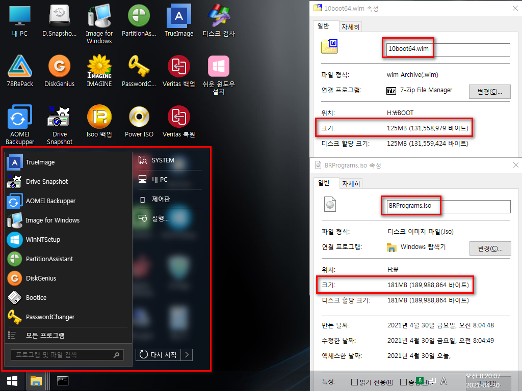 6. boot.wim은 부팅코어만 125MB이고, 프로그램은 181MB 입니다. 이것저것 많이 넣다보니 용량만 늘어나네요.