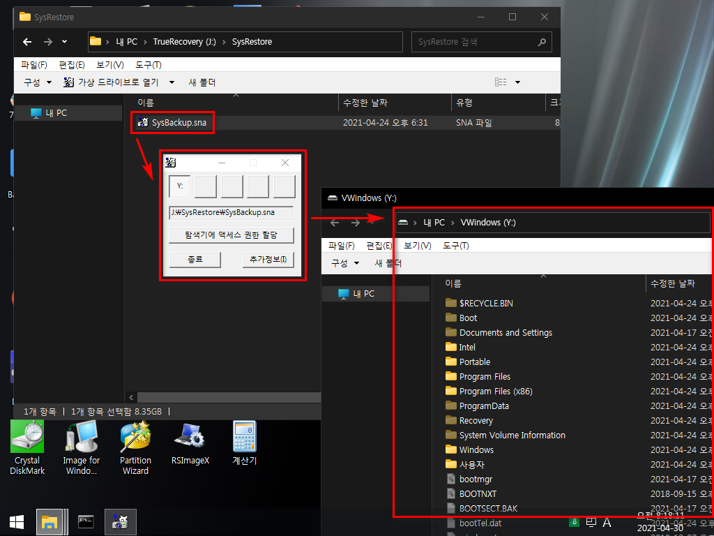 5. 백업 복원 파일들은 탐색기에서 연결될 수 있는건 전부 연결됩니다. 아래 스샷은 스냅샷입니다.