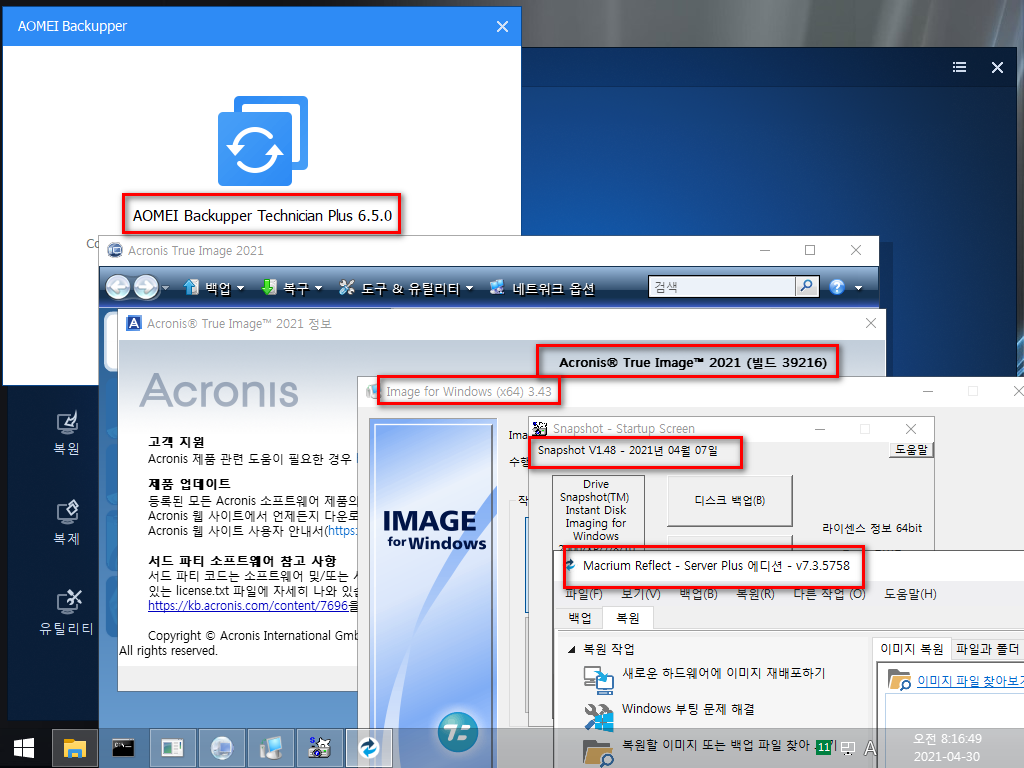 4. 대표적인 백업 & 복원 프로그램들입니다. 현재까지 나온것중 최신 버전 다 잘 호환됩니다.
