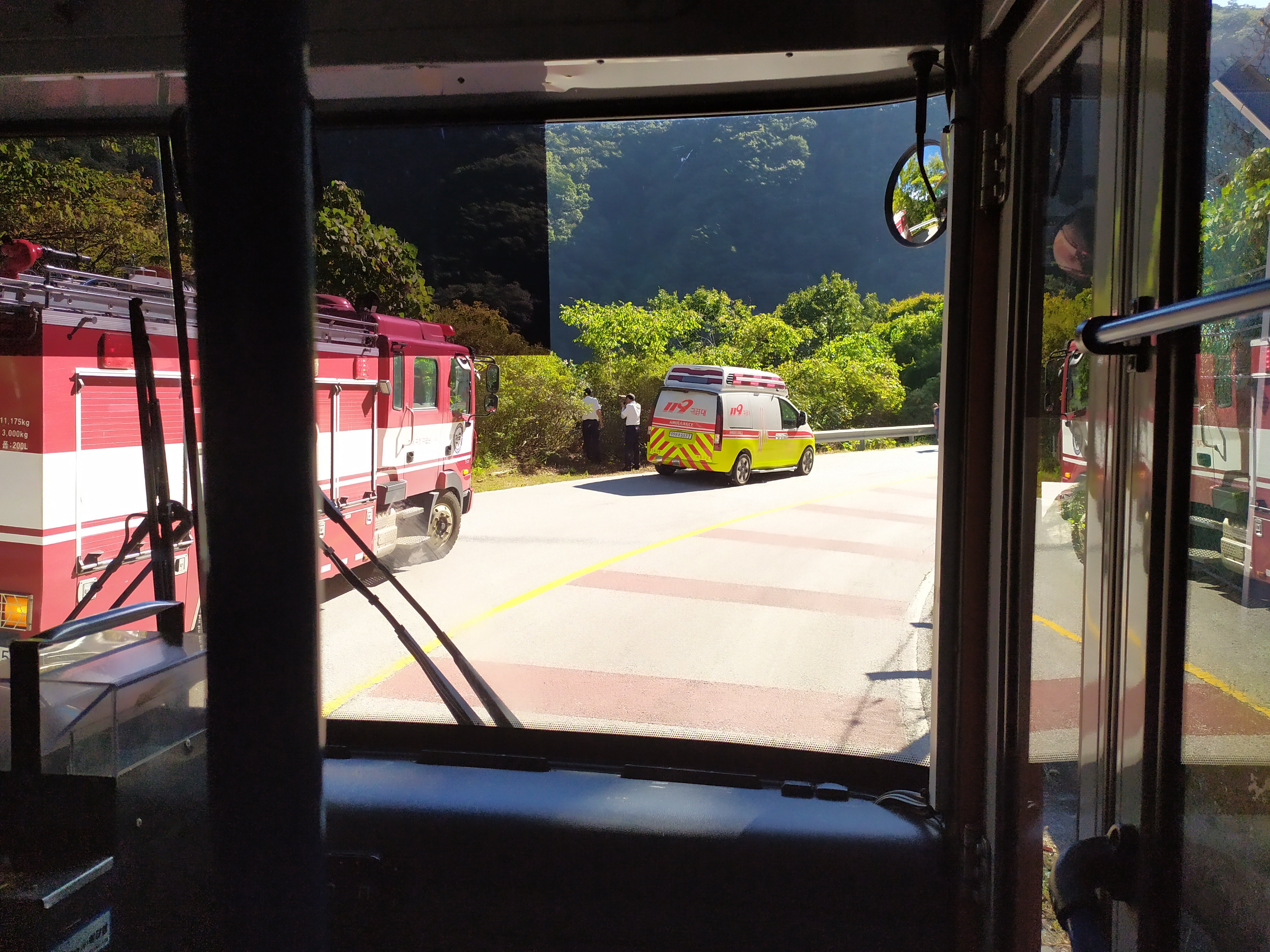 내장산국립공원을 지나면서 사고가 나 있었습니다. 기사님 말씀으로는 차가 가드레일 넘어서 아래로 떨어진것 같다고