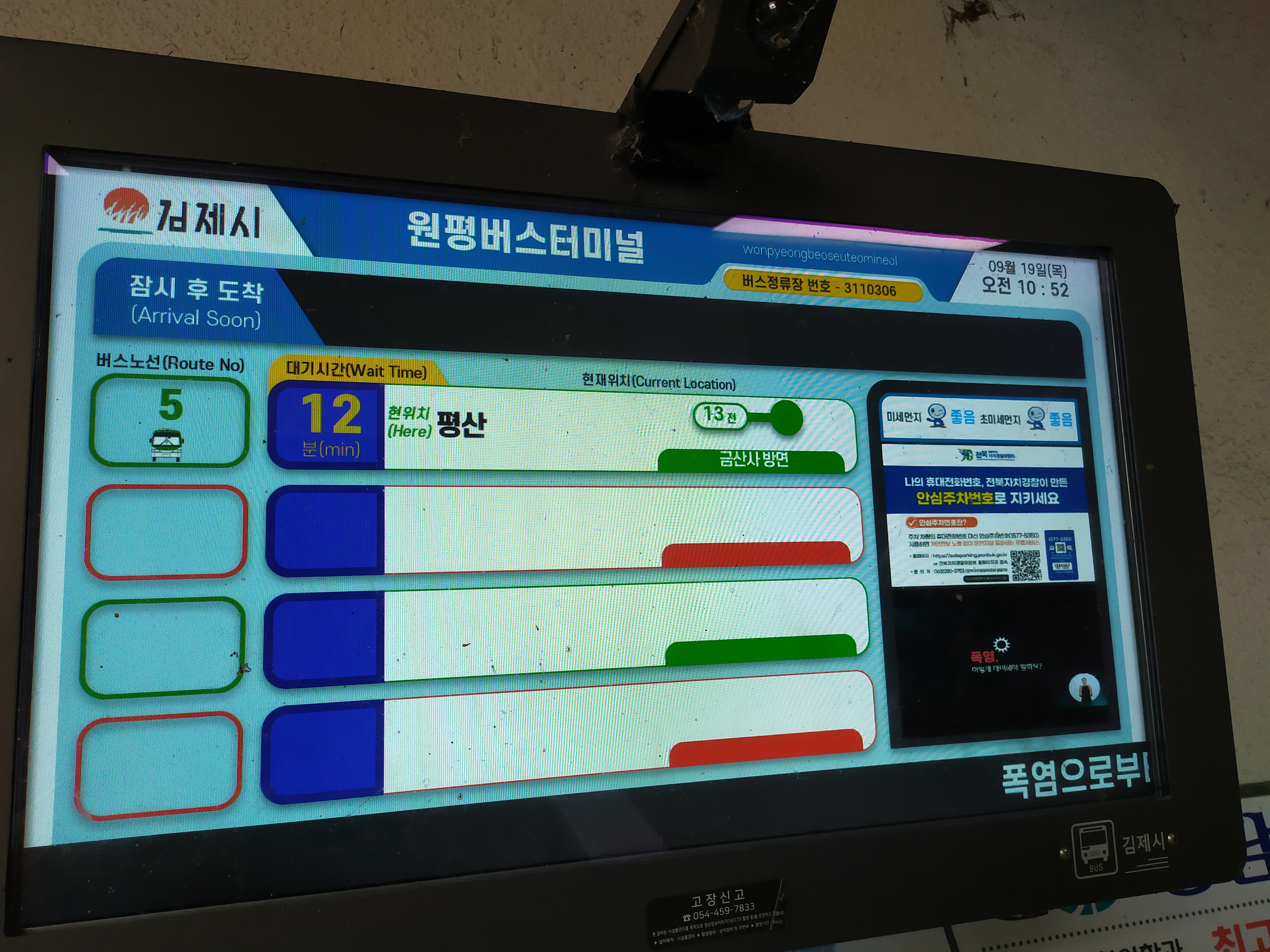 10시 50분에 원평터미널에 도착했습니다. 이제 금산사로 이동하여 전주로 넘어가야 합니다.