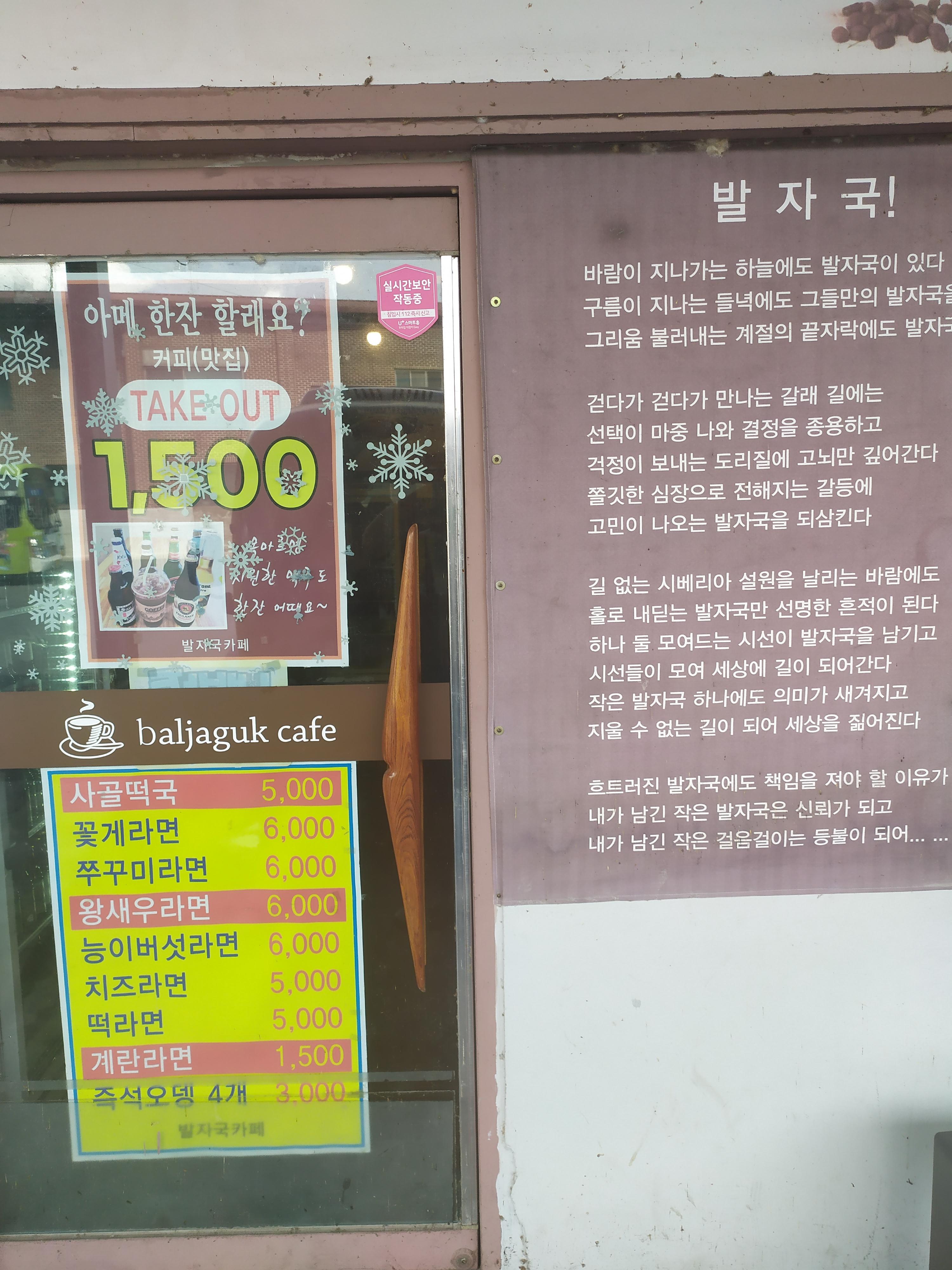 고산터미널 내부에 "발자국" 이란 카페가 있습니다. 커피와 음료도 파는데 무려 라면도 팔고 있습니다.