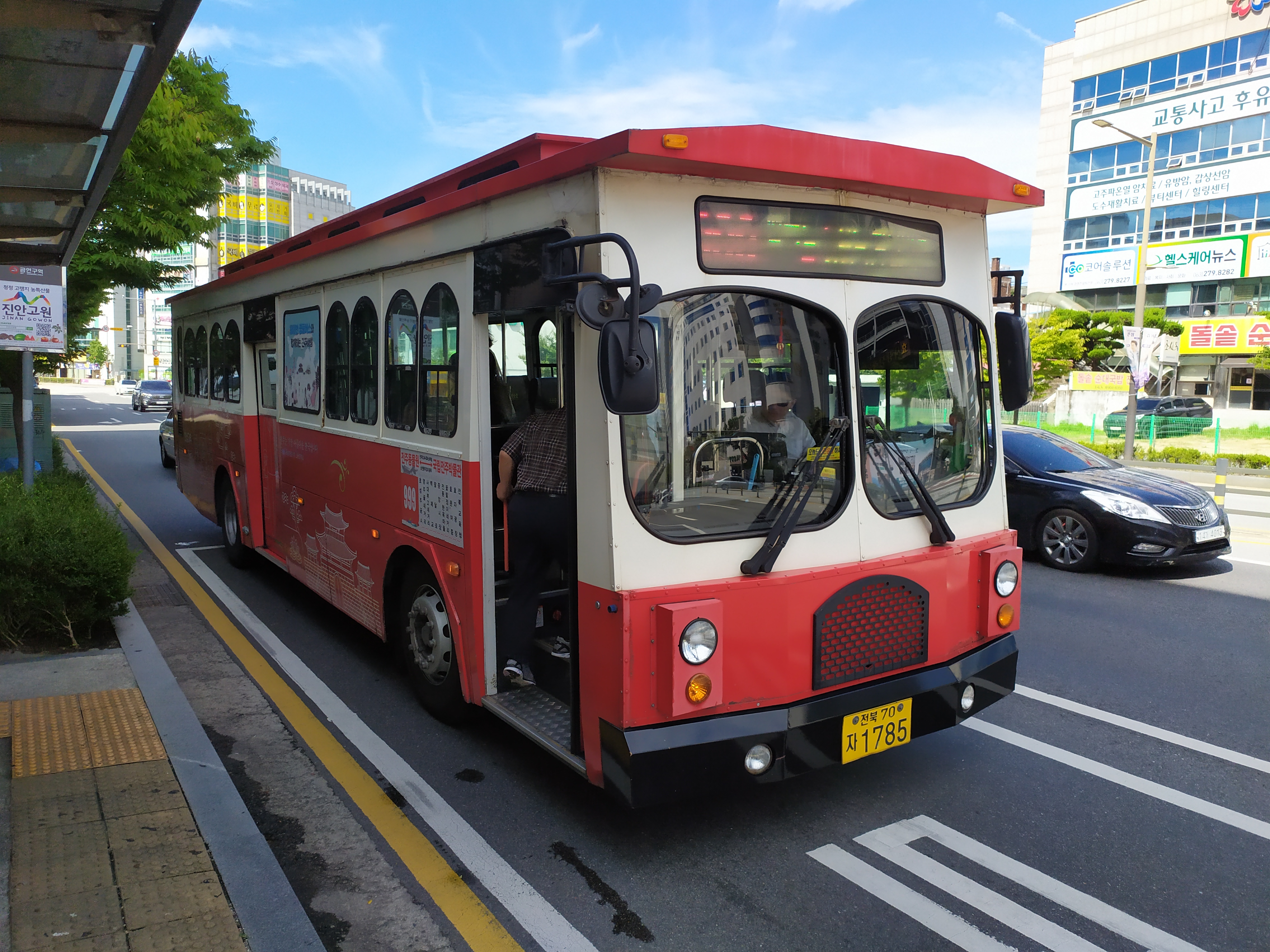 이 버스를 타면 약 1시간동안 전주 곳곳을 누비며 갑니다.