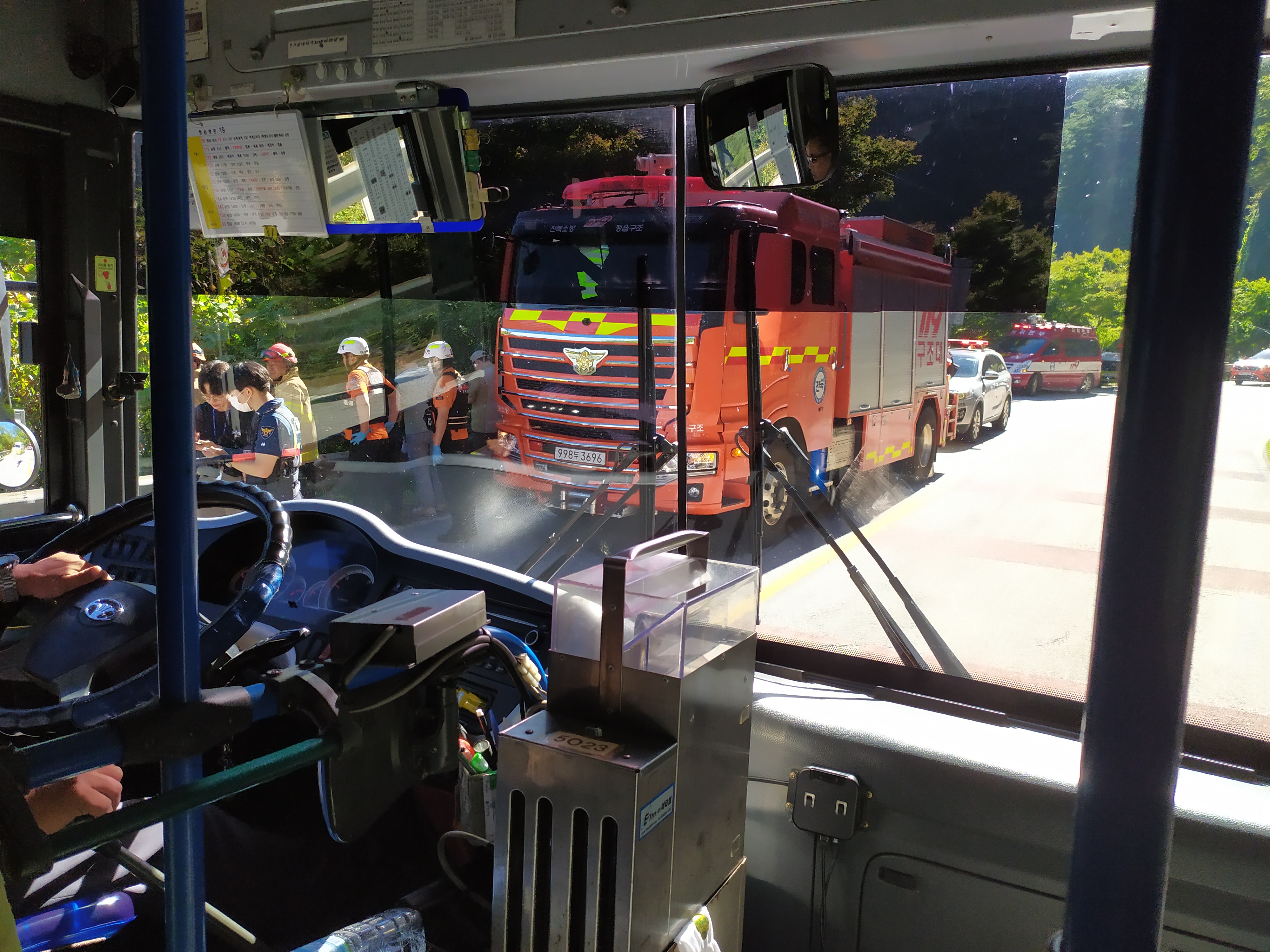 내장산국립공원을 지나면서 사고가 나 있었습니다. 기사님 말씀으로는 차가 가드레일 넘어서 아래로 떨어진것 같다고