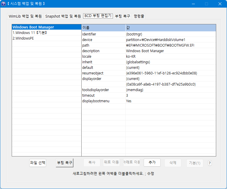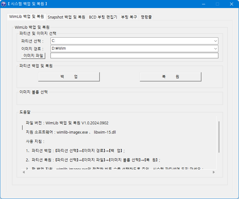 사용법 : pecmd load System_Backup_Restore_1.0.2024.0929.wcs